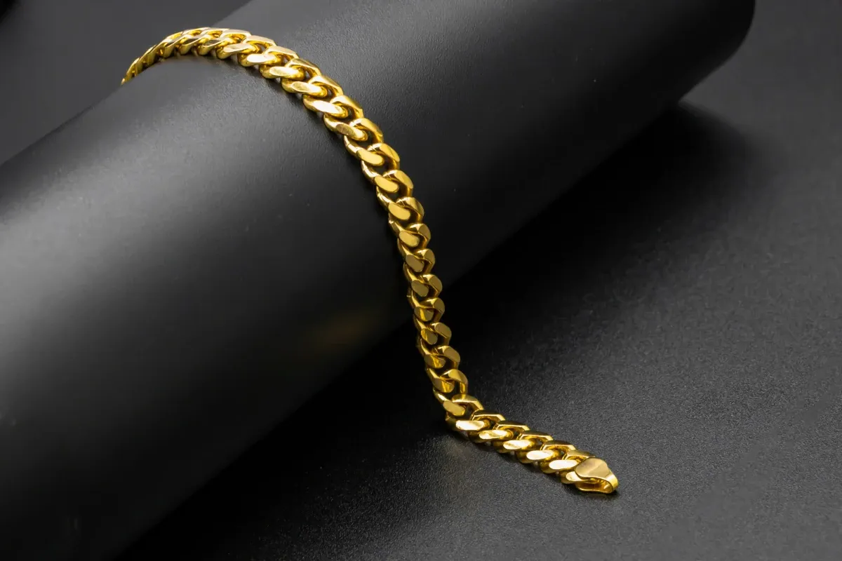 This is a super stylish 9ct yellow gold cuban bracelet.