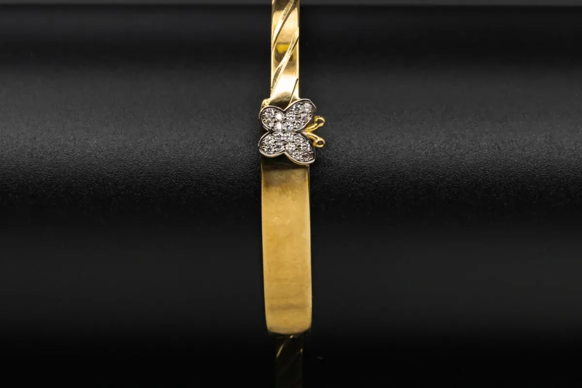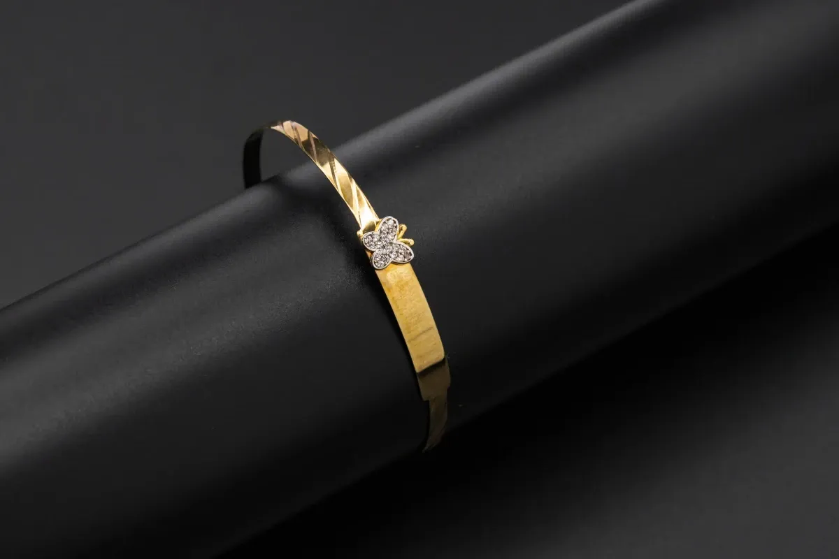 9ct Yellow Gold Cubic Zirconia Butterfly Baby Bangle 3g