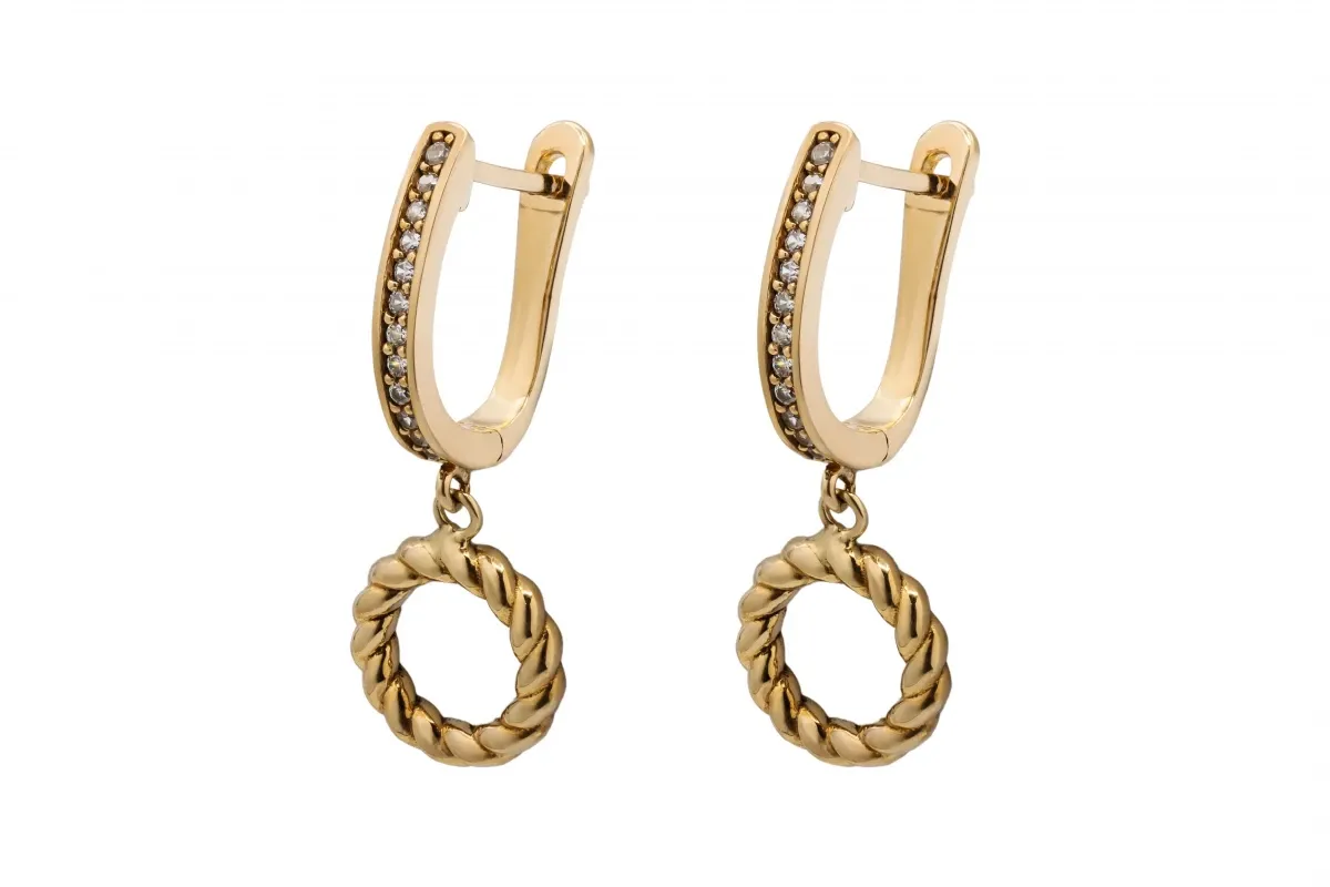 This stylish pair of cubic zirconia earrings with hanging rings are a true classic and made from 9ct yellow gold. Comfortable and perfect to wear for all occasions, weighing 3.3g.