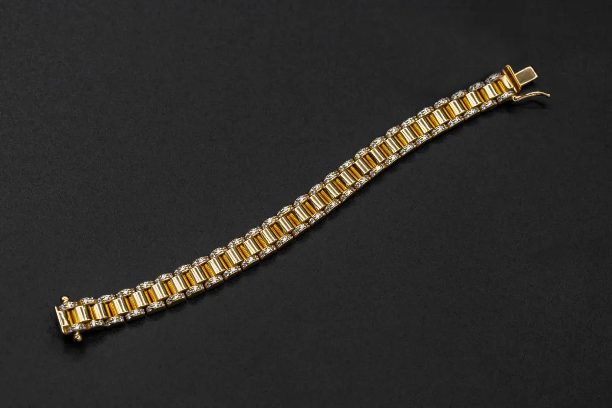 9ct Yellow Gold Cubic Zirconia Presidential Childrens Bracelet 20.3g