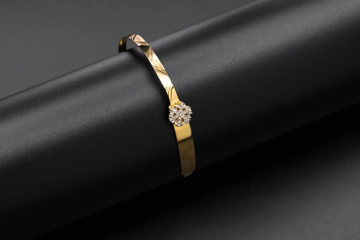 9ct Yellow Gold Cubic Zirconia Snowflake Baby Bangle 3.3g
