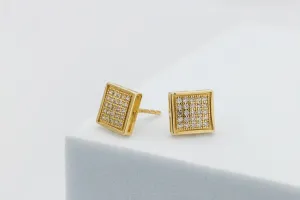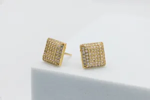 9ct Yellow Gold CZ Micro Pavé Cushion Stud Earrings