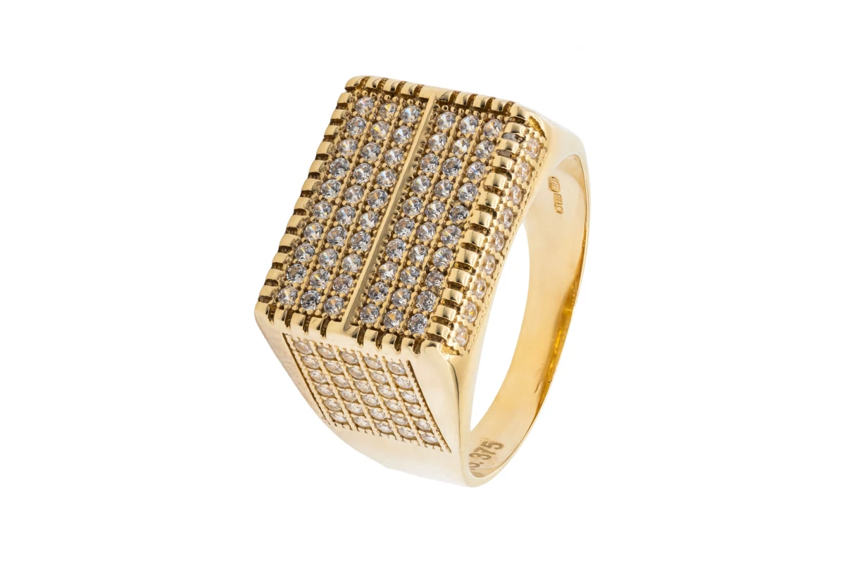 Enhance your style with this elegant 9ct yellow gold ring adorned with sparkling cubic zirconia stones. Weighing 5.5 grams and sized at R, this ring is a harmonious blend of sophistication and charm.