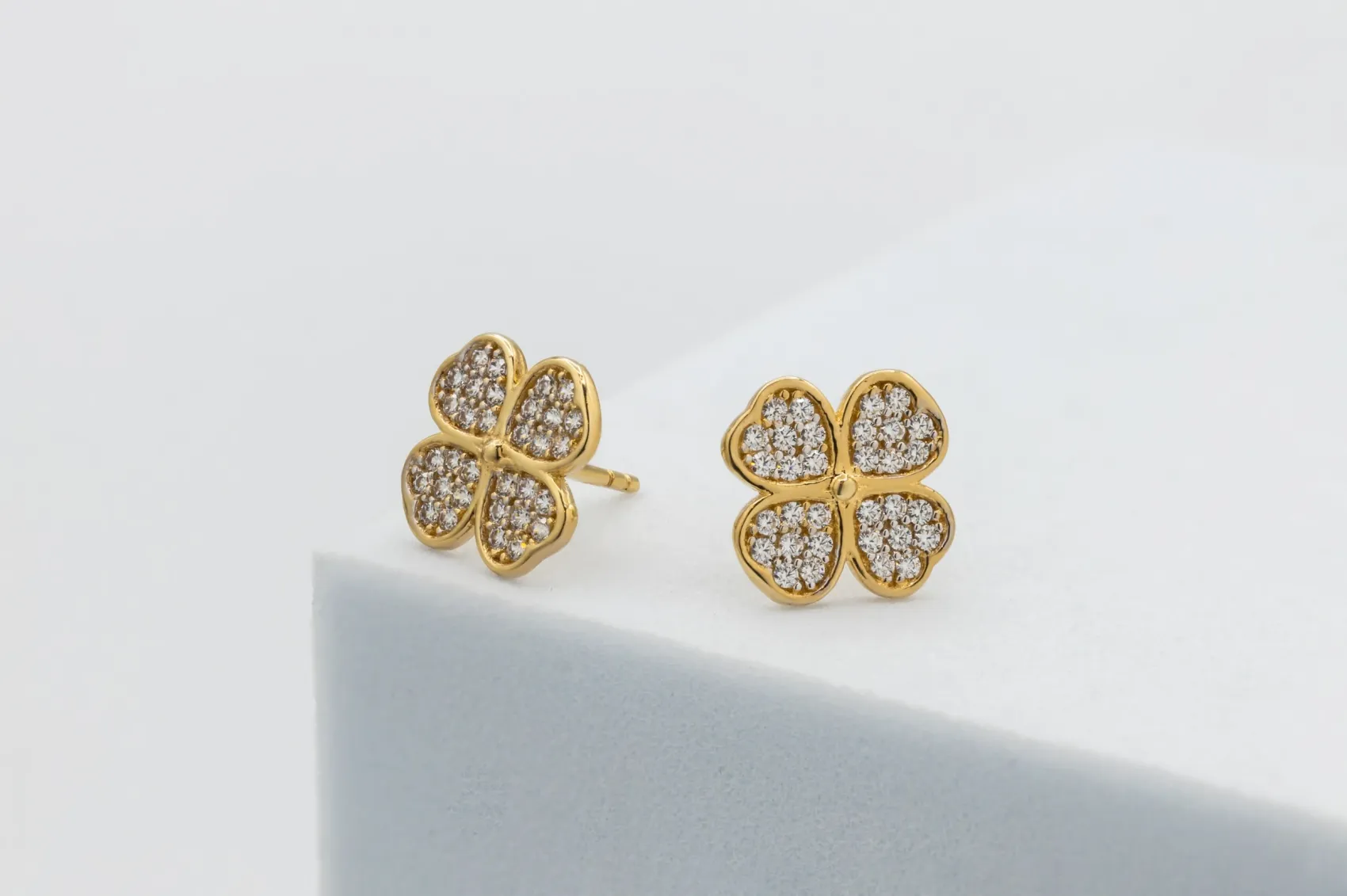 How fun are these 9ct yellow gold cubic zirconia clover studs!