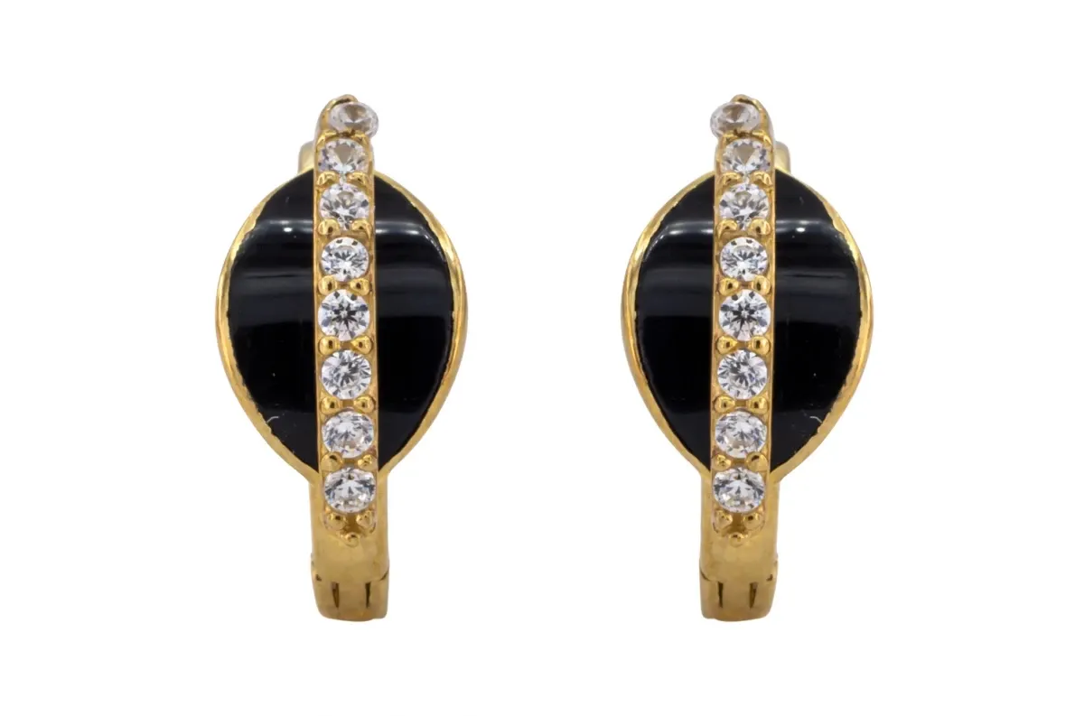These 9ct yellow gold cubic zirconia huggies beautifully designed with black onyx.