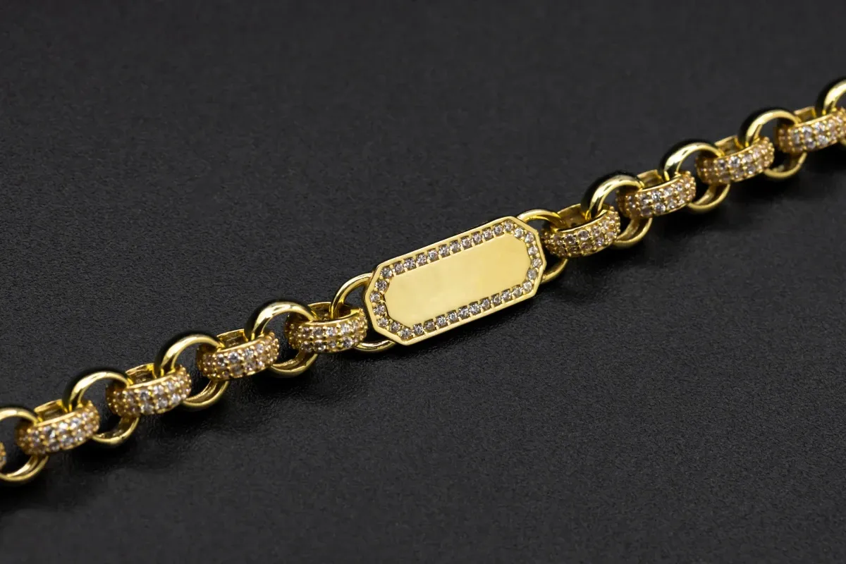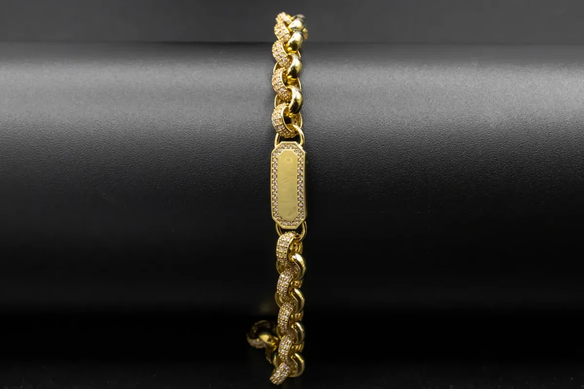 9ct Yellow Gold CZ ID Belcher Design Children's Bracelet 14.1g