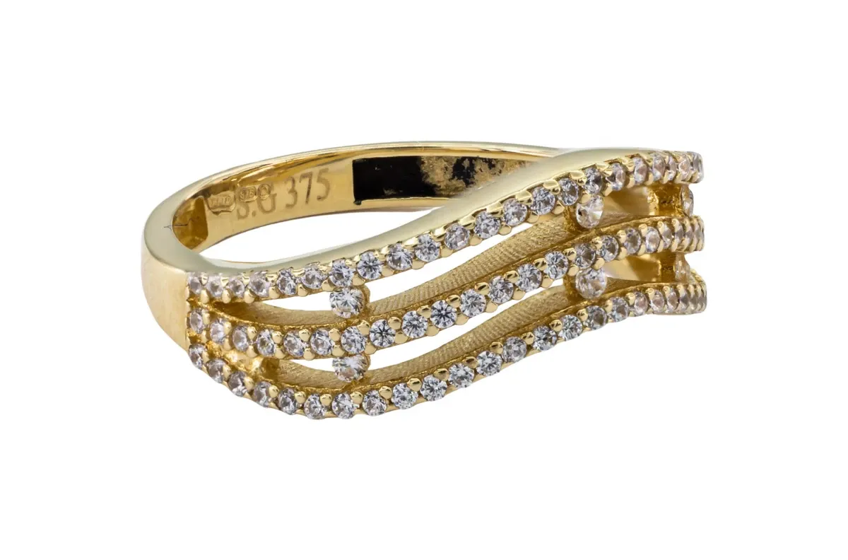 9ct Yellow Gold CZ Multi-Row Dress Ring 3.9g