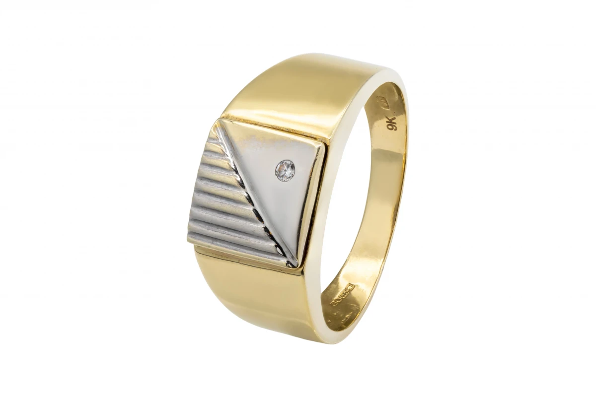 This bold 9ct Yellow Gold Men's Ring showcases a striking Cubic Zirconia centerpiece for a polished and refined look.