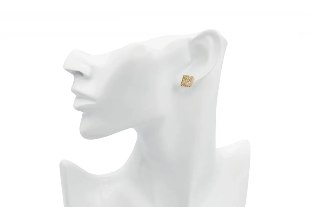 9ct Yellow Gold Cubic Zirconia Square Cluster Stud Earrings 2.2g