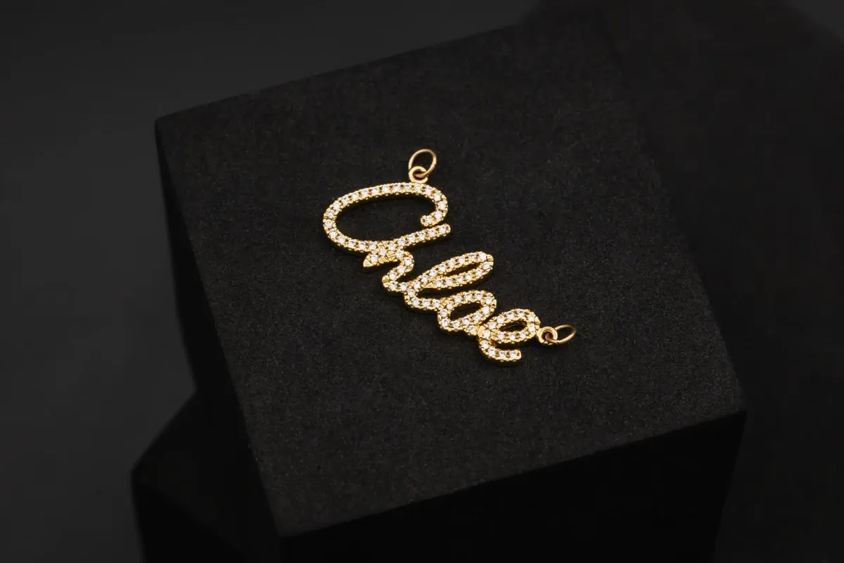 9ct Yellow Gold Diamond Chloe Name Pendant 1.8g