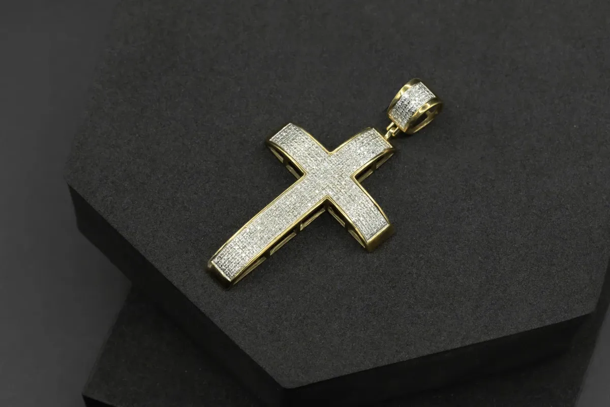This elegant piece of jewelry is a 9ct yellow gold diamond cross pendant, combining faith and style in a delicate design.