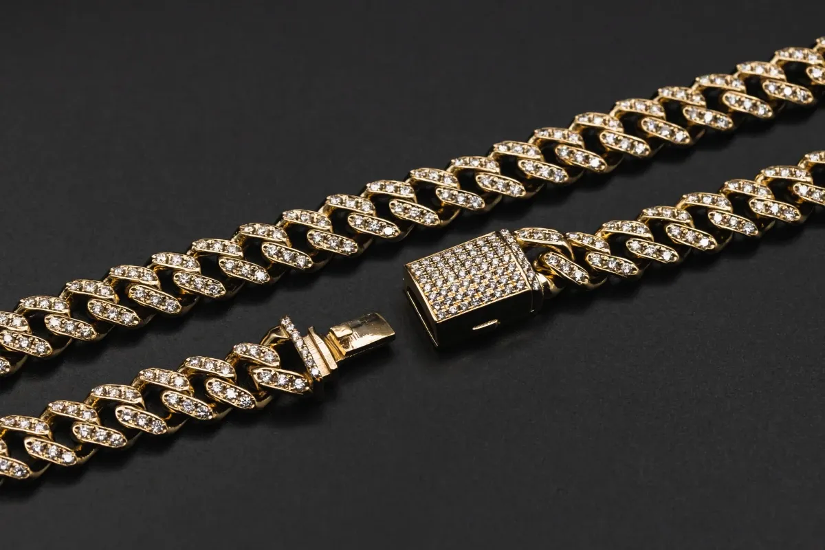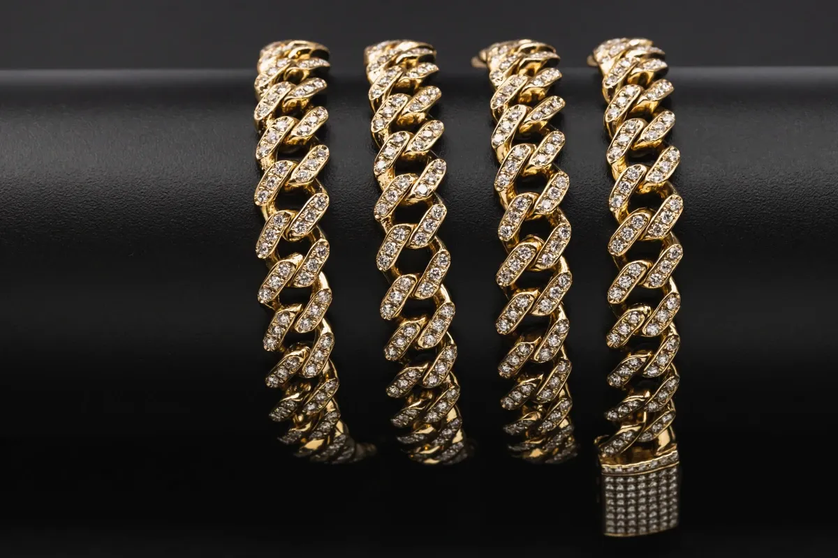 Adorned with 13.65 carats of G VS diamonds, this luxurious chain combines bold design with exceptional brilliance, making it a standout piece for any collection.