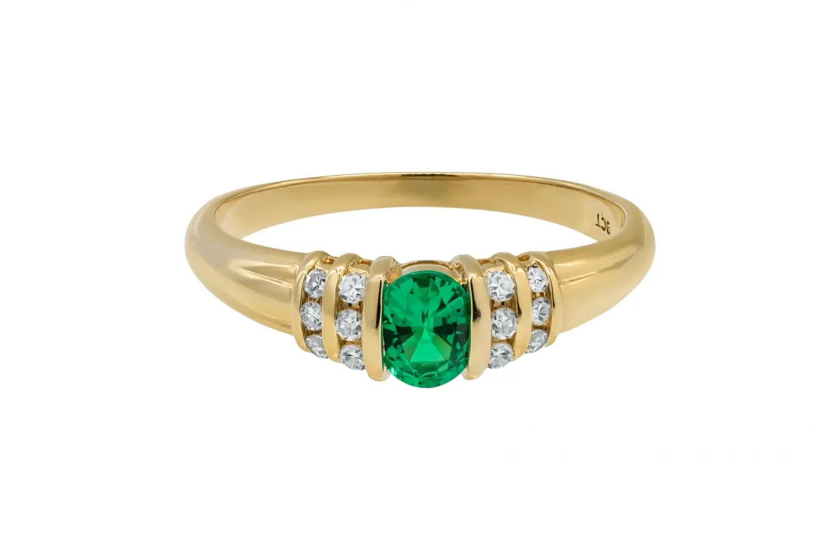 9ct Yellow Gold Diamond & Emerald Ring 2g