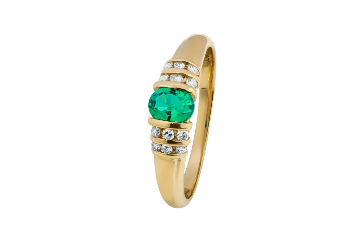 This ring is made of 9ct yellow gold and weighs 2 grams. It features a central oval emerald stone 0.48ct, surrounded by smaller diamonds. The emerald is a stunning green colour and is known for its vibrant and mesmerising beauty. The diamonds add a touch of sparkle and elegance to the ring. The yellow gold band adds a warm and classic touch to the overall design. This ring would be a beautiful addition to any jewellery collection and is perfect for special occasions or as a statement piece.