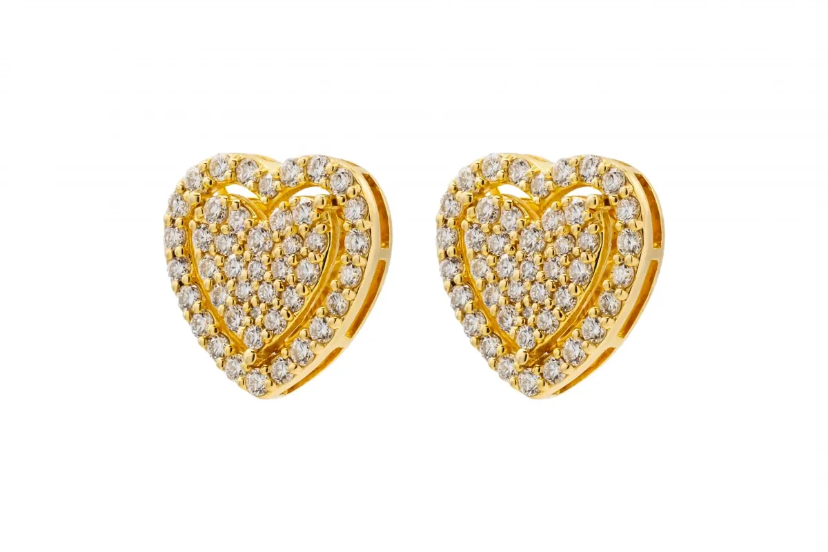 9ct Yellow Gold Diamond Heart Studs 1.10cts 4.5g