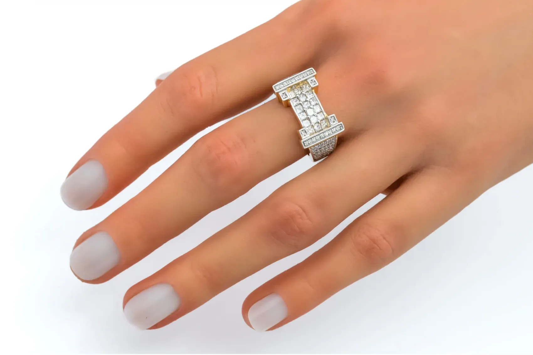 Weighing 5.8g and crafted in size N, this design blends timeless craftsmanship with modern radiance, making it perfect for anniversaries, celebrations, or as a standout piece in a fine jewellery collection.