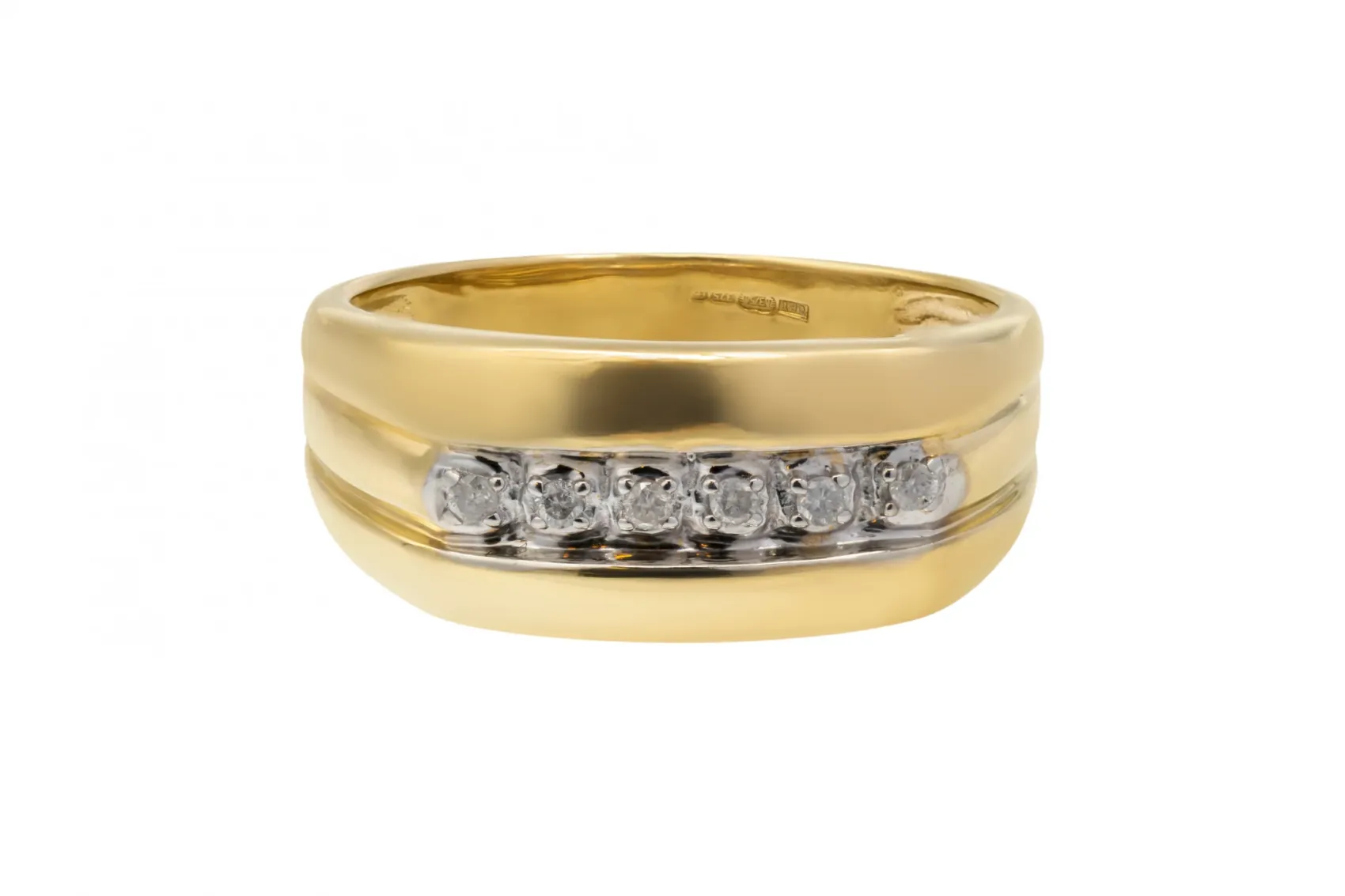 This timeless 9ct yellow gold wedding band is set with 0.28ct of round brilliant cut diamonds, graded G colour with SI1 clarity for exceptional sparkle.