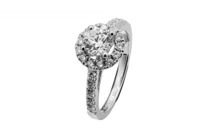 This Platinum Emerald Cut Diamond Engagement Ring features a stunning 1.36ct emerald cut diamond at its center.