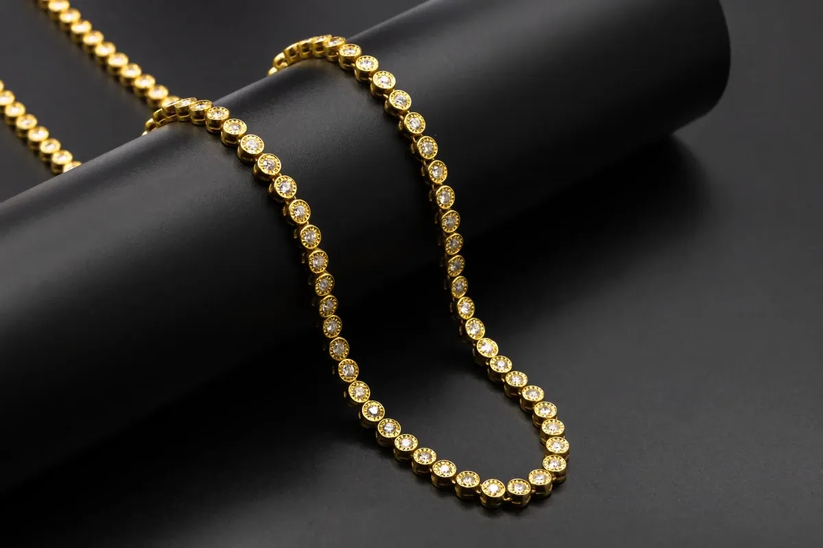 This classic diamond tennis necklace in 9ct yellow gold is beautiful in its simplicity.