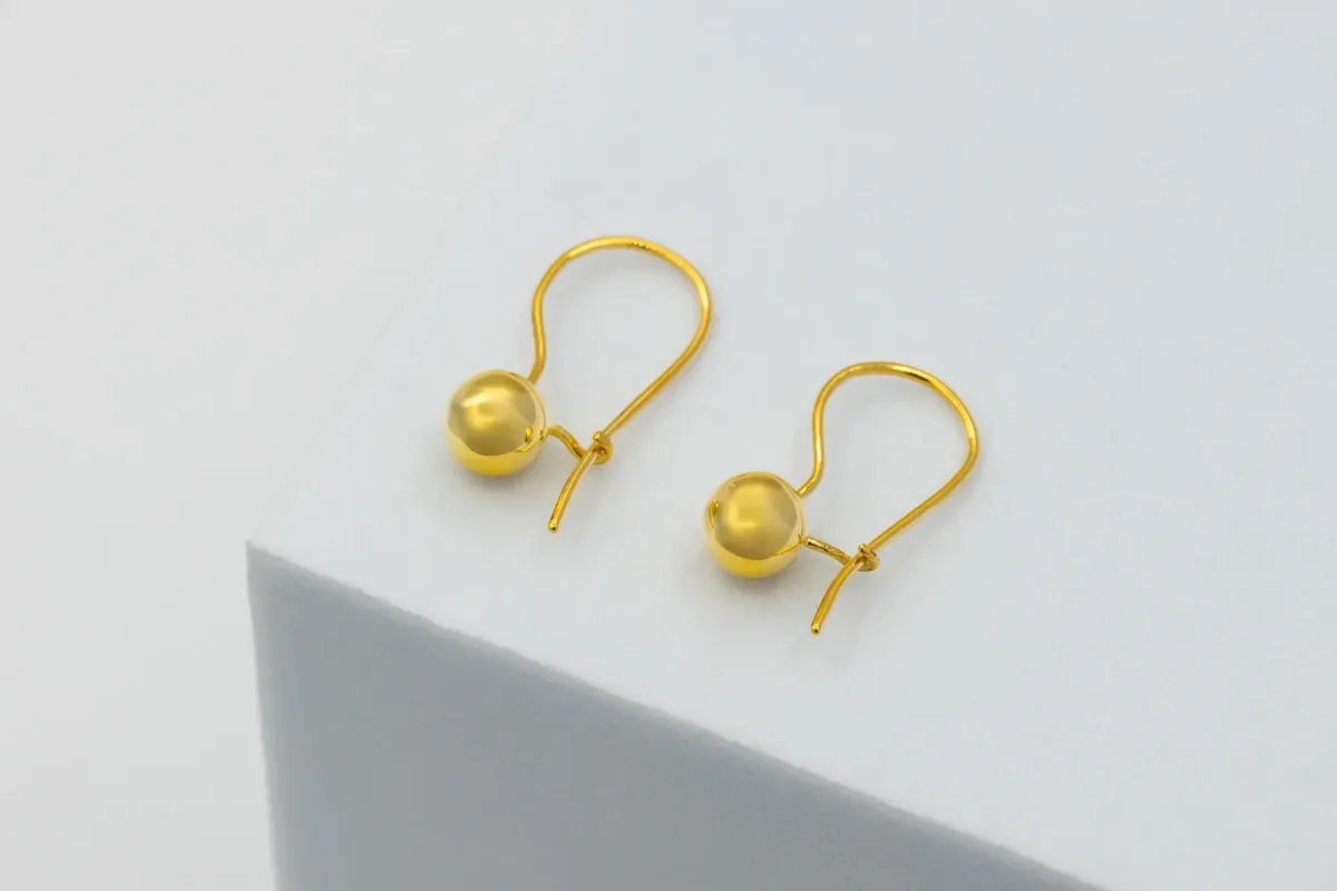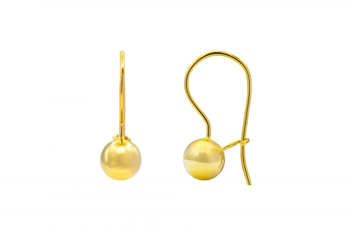 These elegant 9ct yellow gold Euroball drop-down earrings weigh 1.9 grams and feature a sleek, contemporary design.