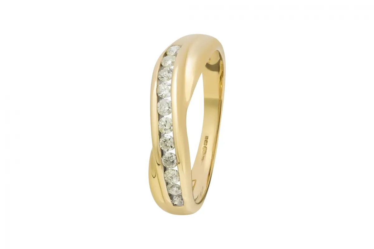 This 9ct Yellow Gold ladies' wedding band features 0.22ct of channel-set diamonds for a timeless and elegant look.