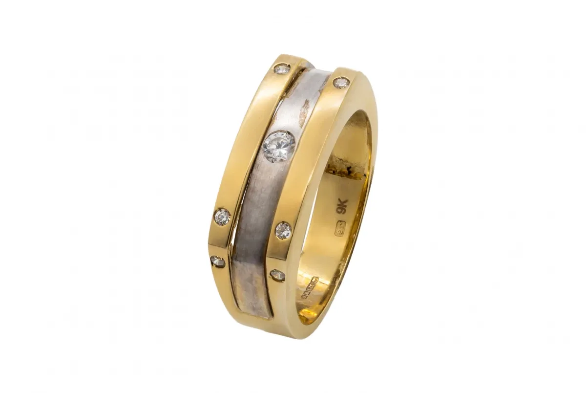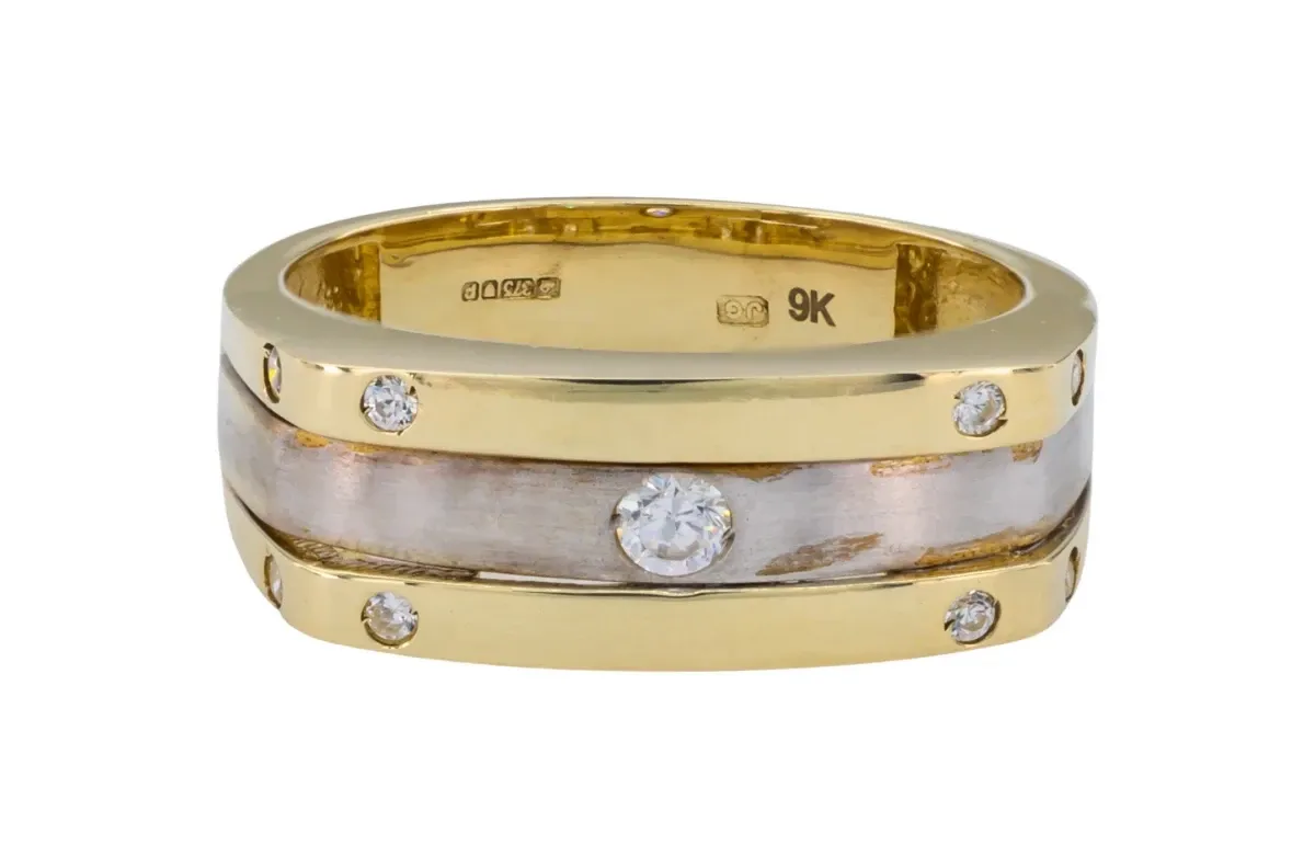 9ct Yellow Gold Cubic Zirconia Two-Tone Band Ring