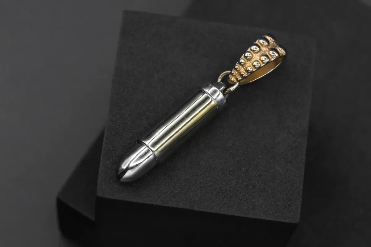 Unleash your bold and edgy style with this captivating 9ct yellow and white gold bullet pendant.