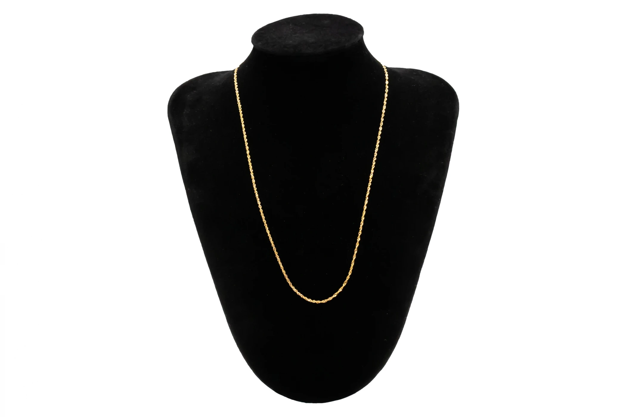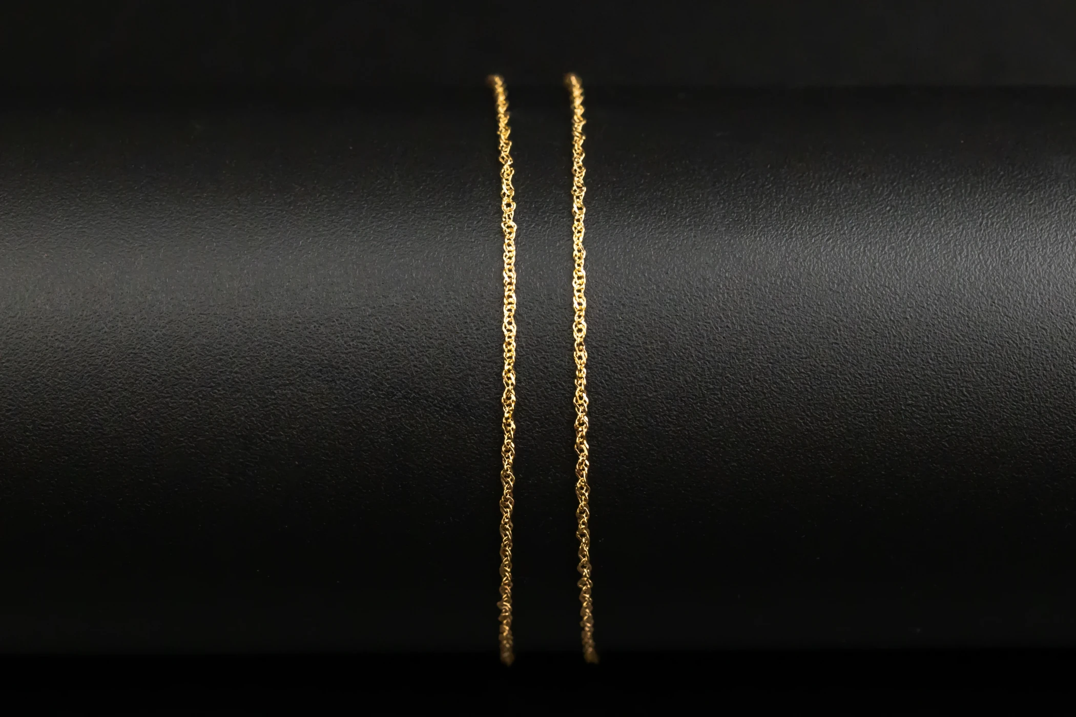 Weighing 1g, it offers a luxurious shine and comfortable fit, perfect for both everyday wear and special occasions. The timeless rope pattern adds texture and depth, making it an ideal standalone piece or the perfect complement to a pendant.