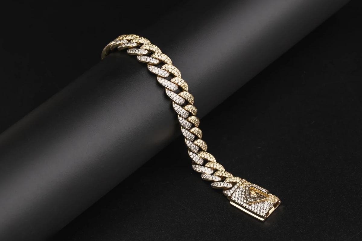 Make a bold statement with this 9ct yellow gold Cuban bracelet set with 6.83 carats of shimmering yellow and white diamonds.