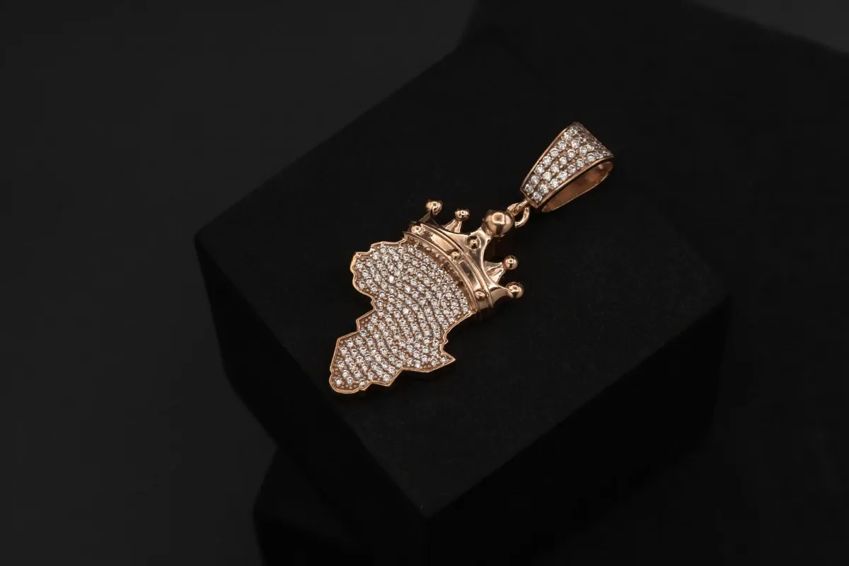 9ct Rose Gold Diamond Africa Map Crown Pendant 1.65ct