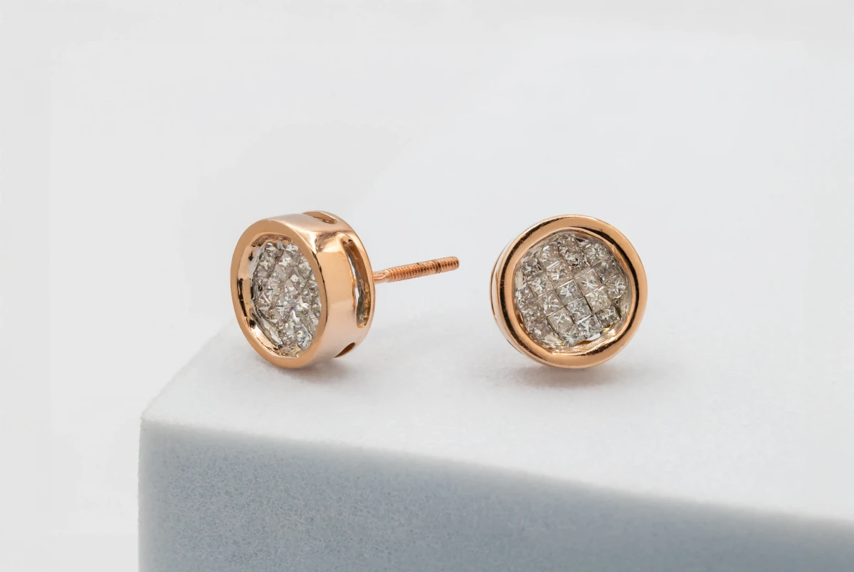 These 9ct rose gold princess cut diamond stud earrings feature 0.82ct of diamonds (H SI2) and weigh 3.2g.