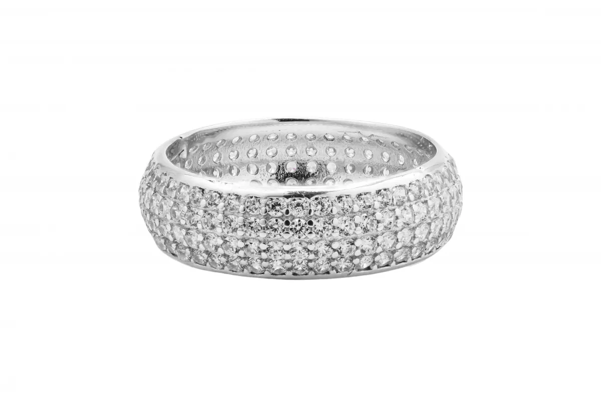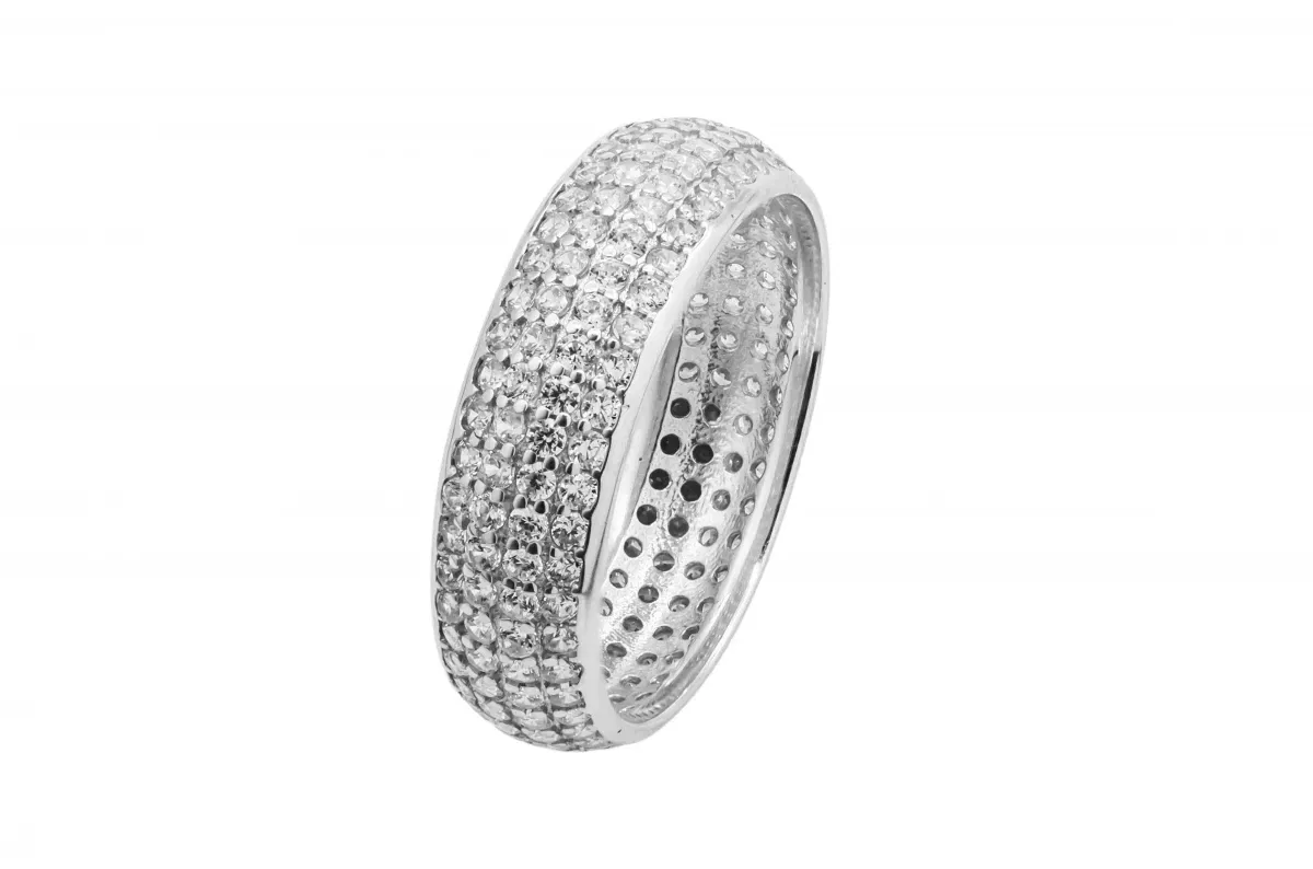 This stunning 9ct white gold eternity wedding band is adorned with shimmering cubic zirconia stones, symbolising everlasting love.