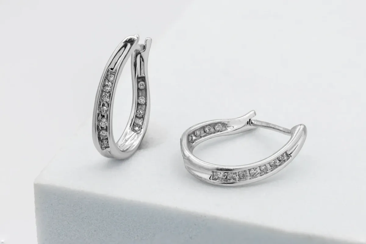 9ct White Gold Diamond Huggie Earrings 2.5g