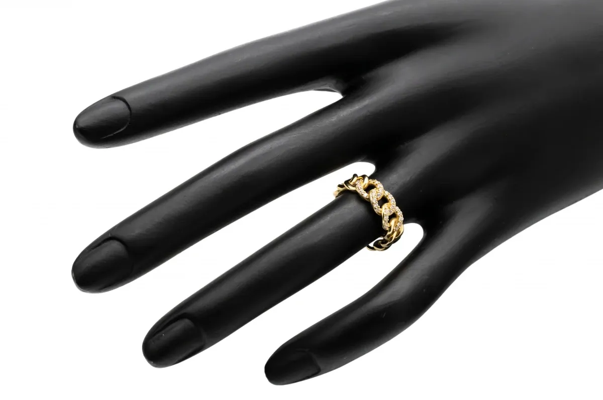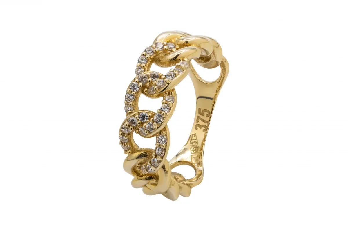 Stunning 9ct yellow gold Cuban ring adorned with sparkling cubic zirconia, a true testament to elegance and sophistication.