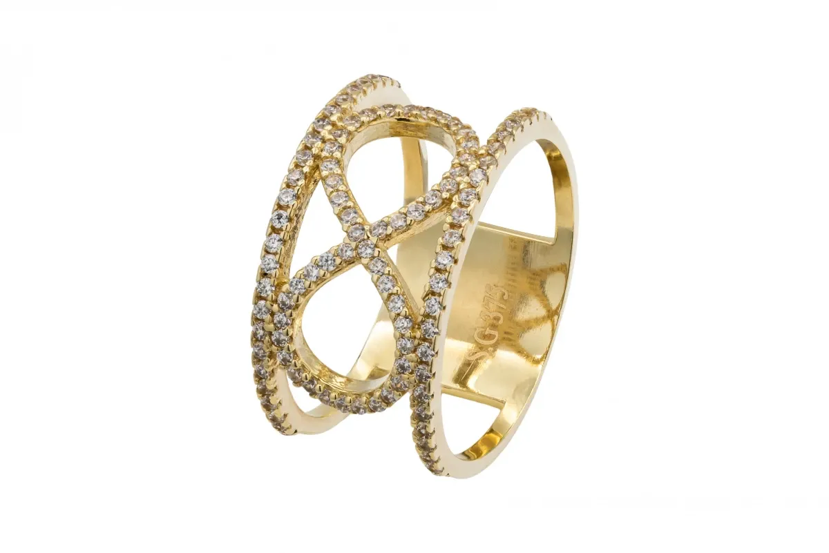 9ct Yellow Gold Cubic Zirconia Infinity Ring 3.4g