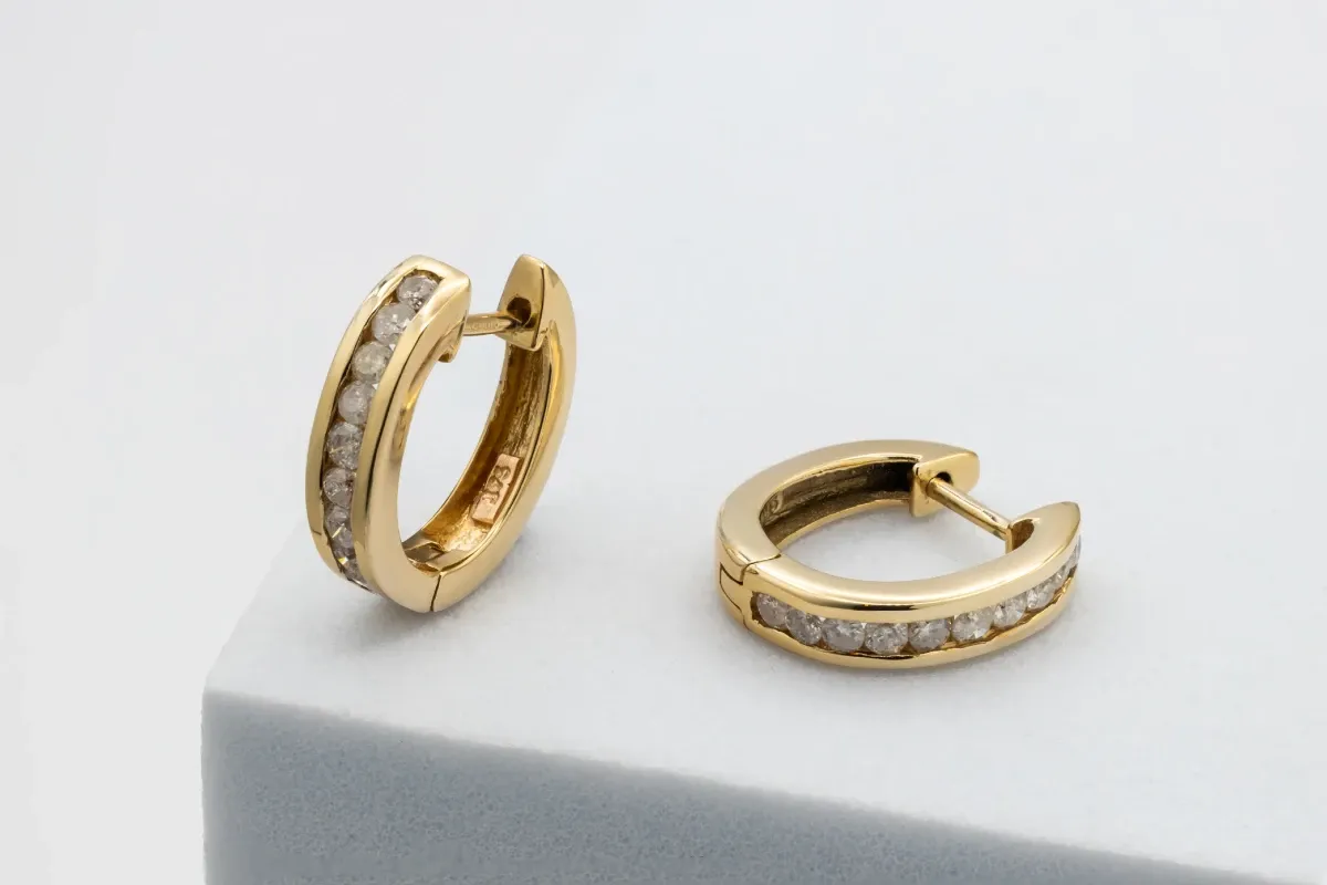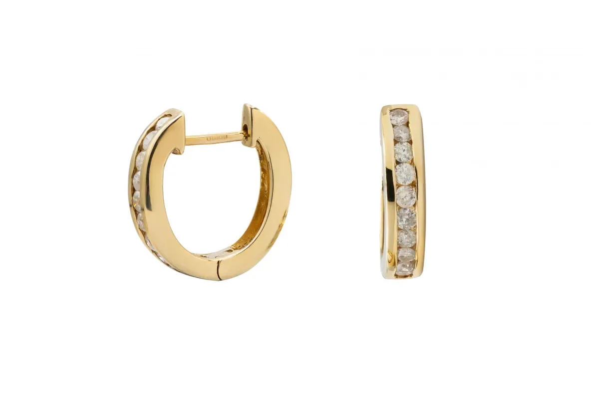 These 9ct yellow gold diamond huggie earrings feature 0.60ct of sparkling G color, Si clarity diamonds, adding a touch of elegance to any look.