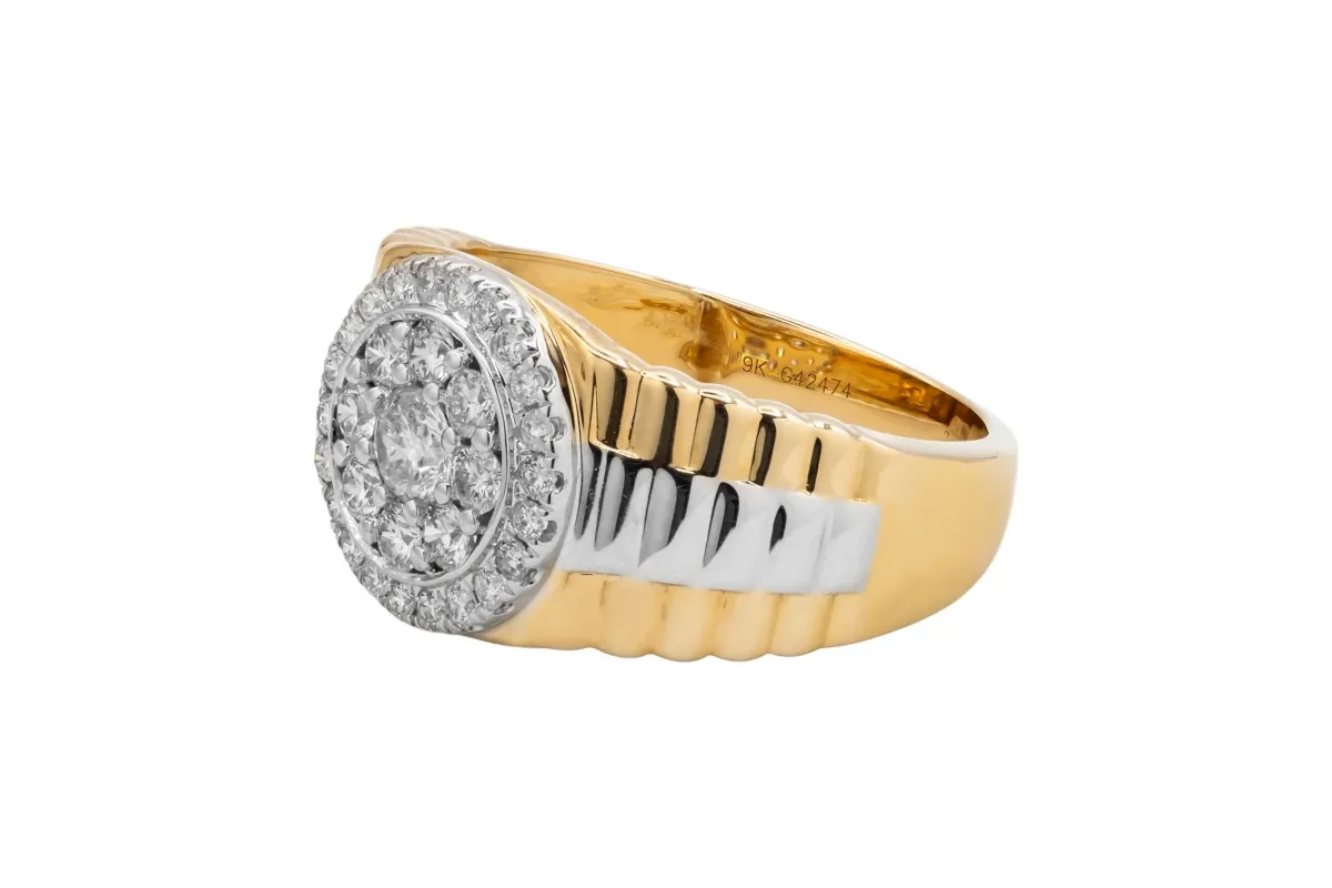 9ct Yellow Gold Diamond Mens Ring 1.05ct