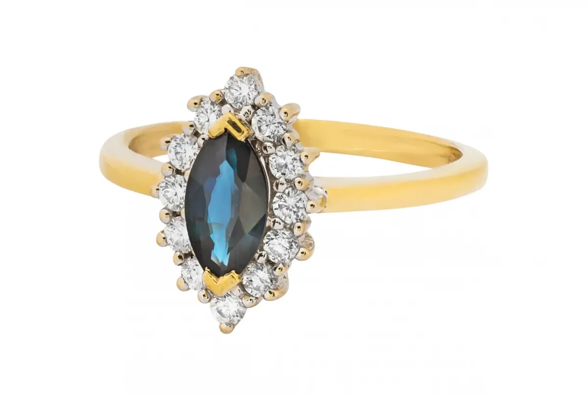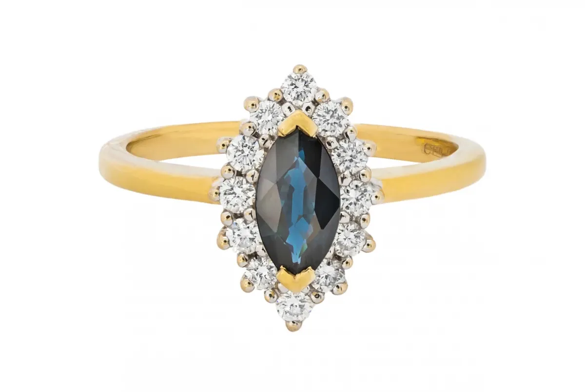 18ct Yellow Gold Diamond & Marquise Sapphire Ring 0.75ct