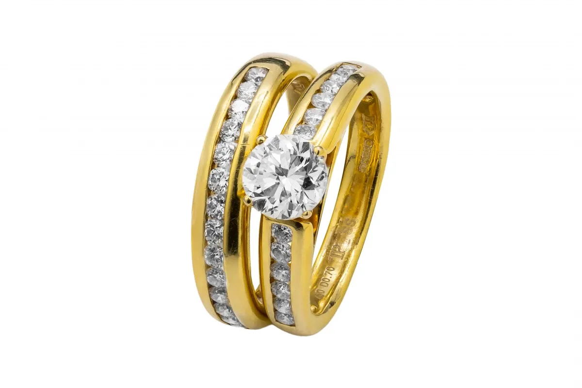 Exquisite 18ct Yellow Gold Engagement Ring and matching Wedding Band, a symbol of timeless commitment and enduring elegance.