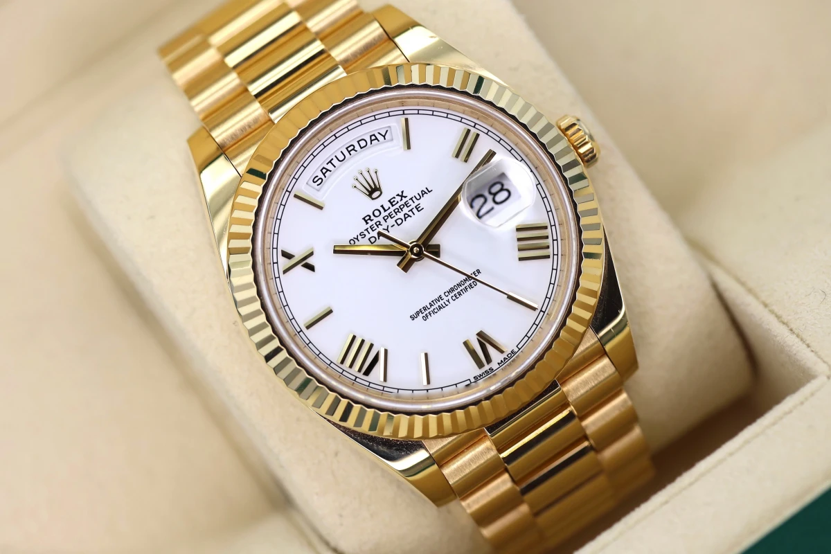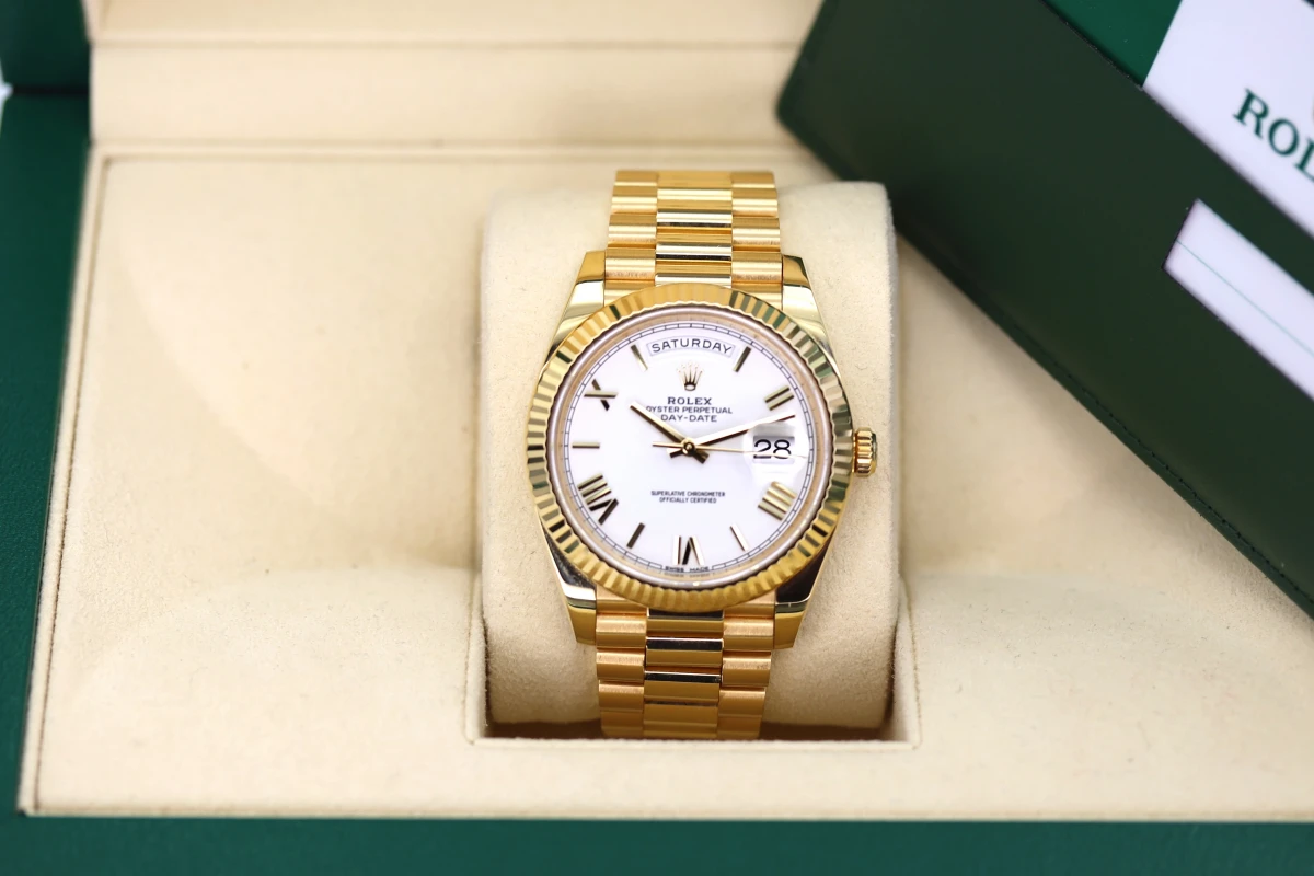Very sought after and a great collectors watch, the Day-Date 40. Made from solid 18ct yellow gold throughout with the presidential style bracelet it really is a beauty.