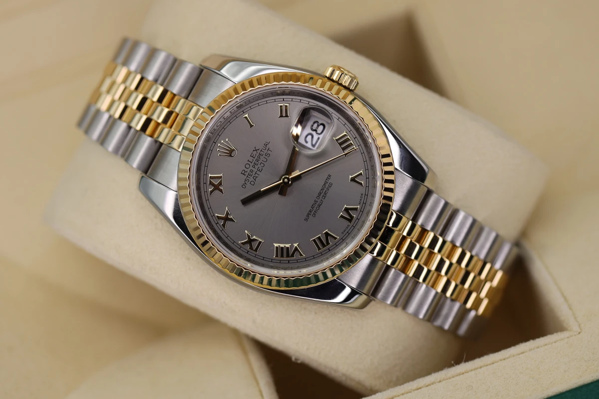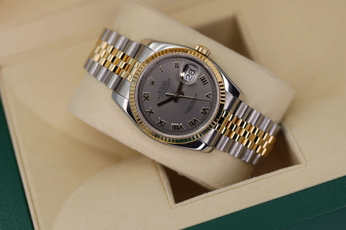 Rolex Datejust Stainless steel & 18ct yellow gold with Rhodium Grey Roman Numeral dial.