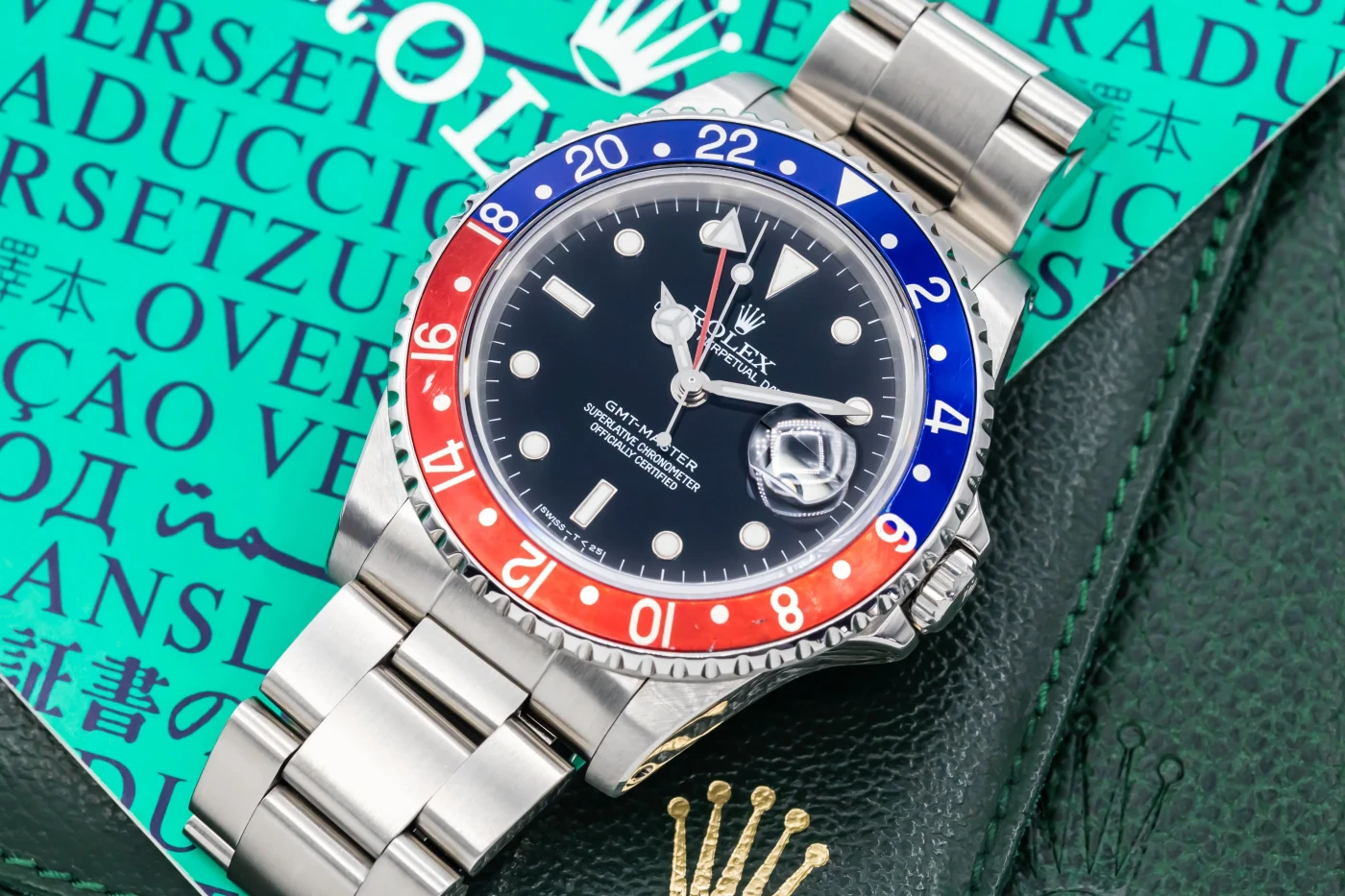 Steel variants provide the best combination of liquidity and appreciation. The GMT-Master II "Pepsi" (red and blue bezel) and "Batman" (blue and black bezel) offer global recognition and proven value retention. The Diamond Box stocks both current and vintage references.