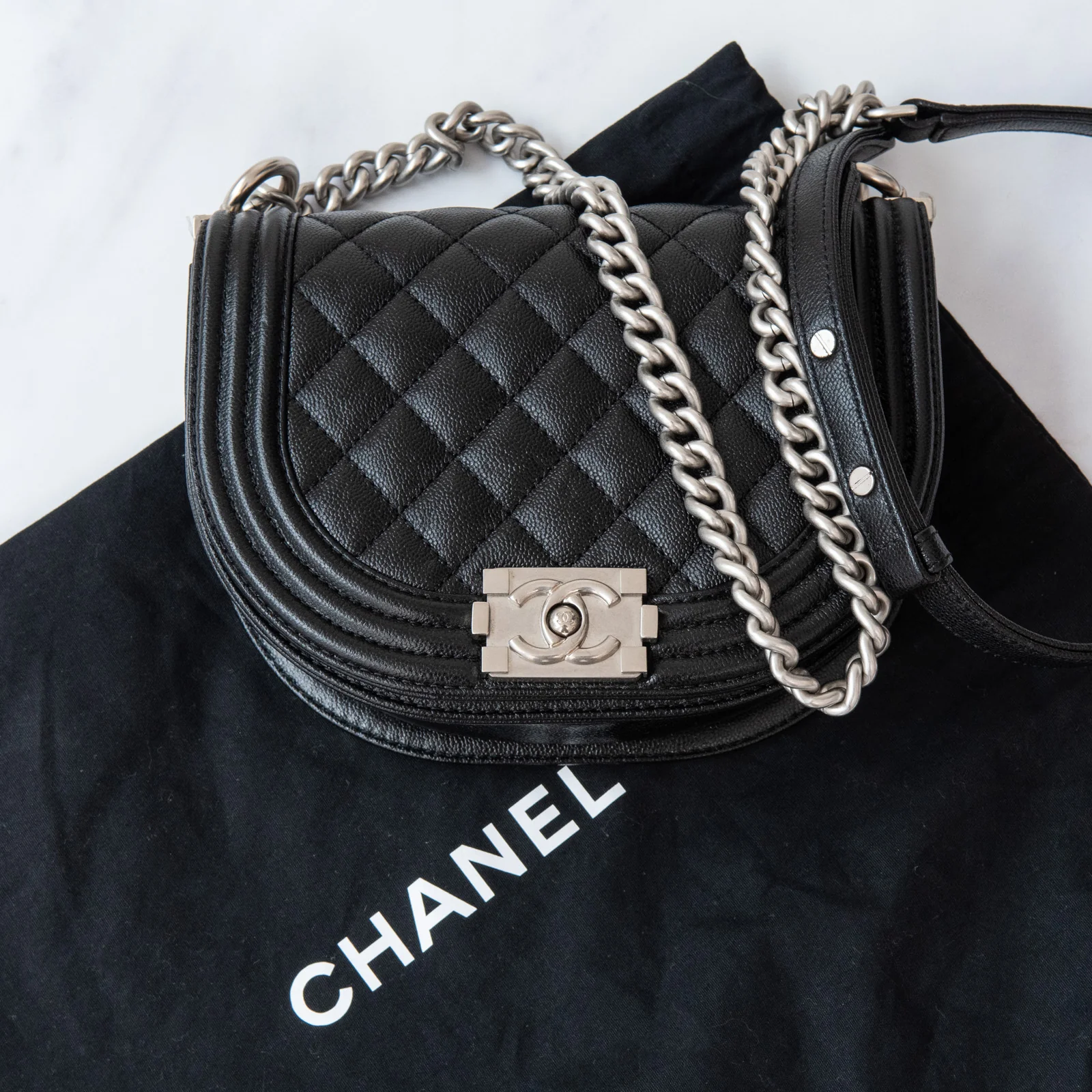 Chanel Black Caviar Leather Quilted Small Boy Messenger Bag