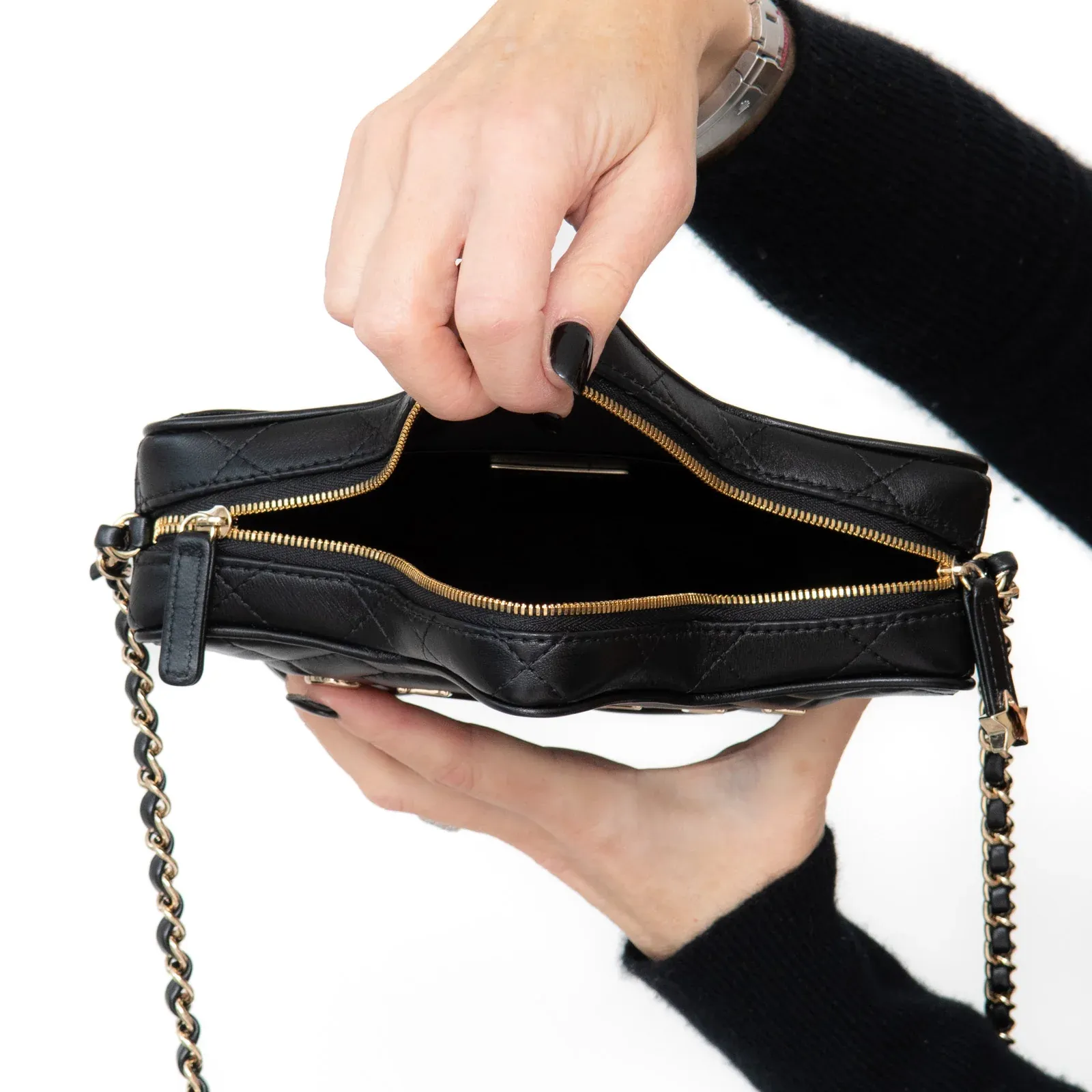 • Black quilted lambskin leather