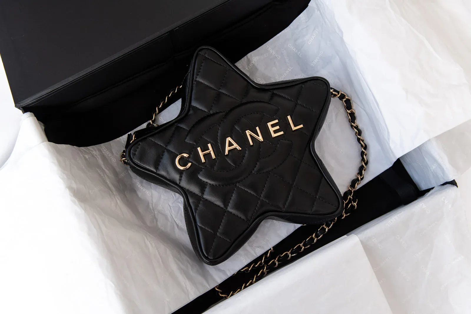 Chanel Black Leather Limited Edition Star Handbag