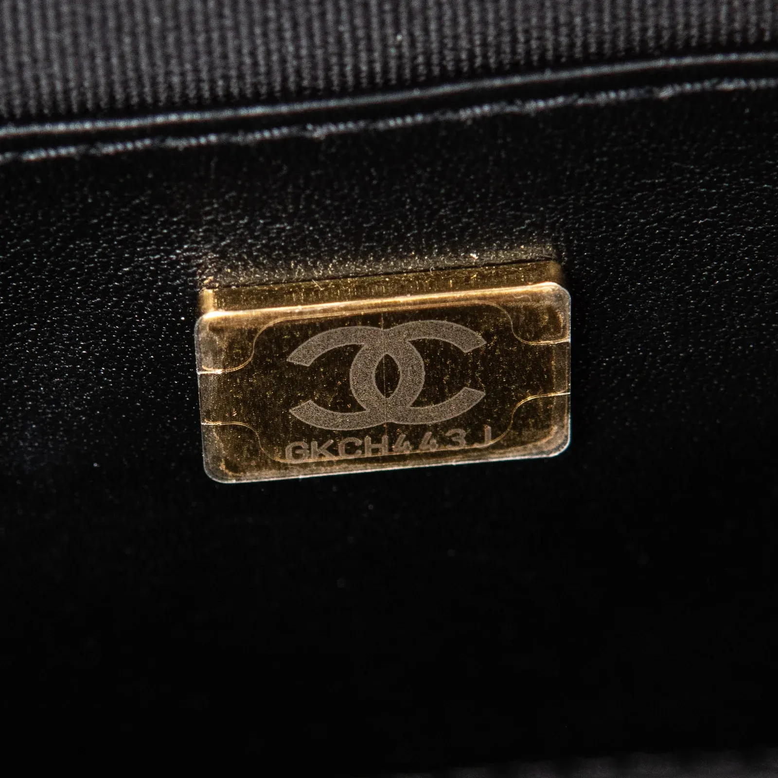 • Chanel embossed leather logo tag