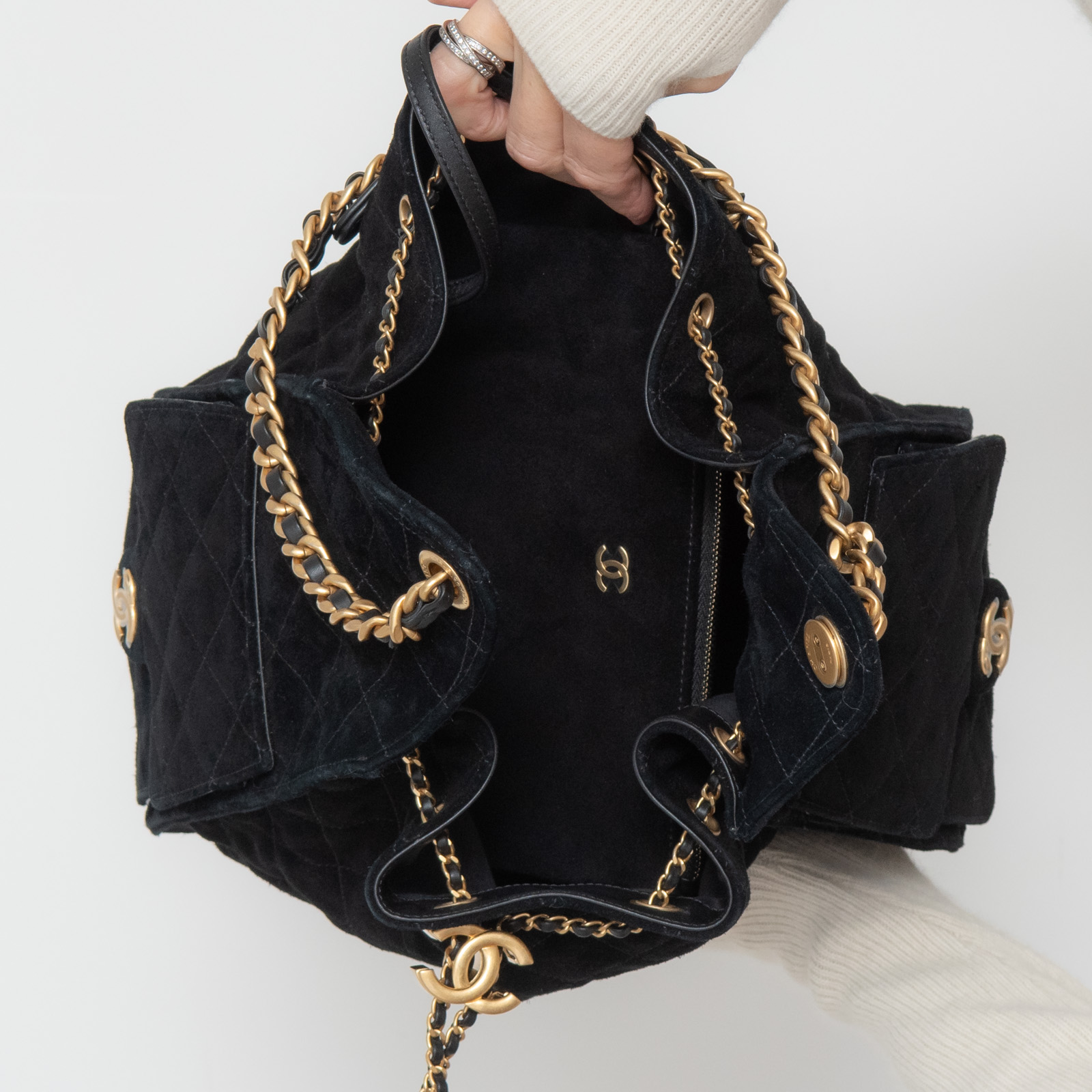 Chanel 25 Medium Black Suede Hobo Bag 2025