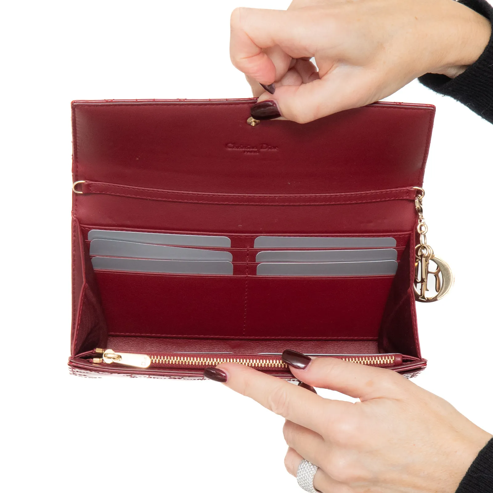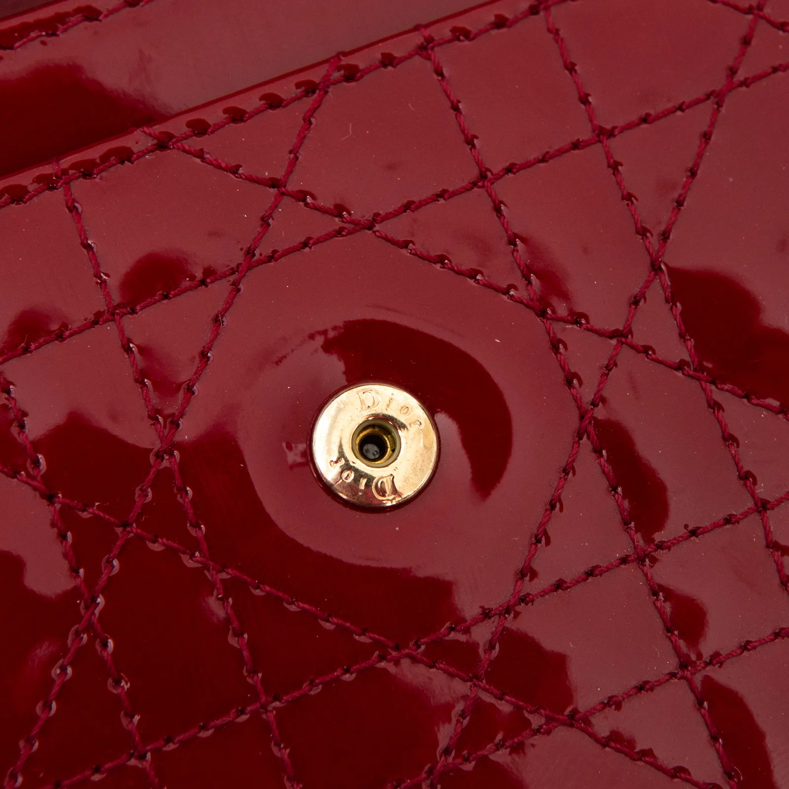 Dior Red Patent Leather Cannage Lady Dior Wallet On Chain Bag