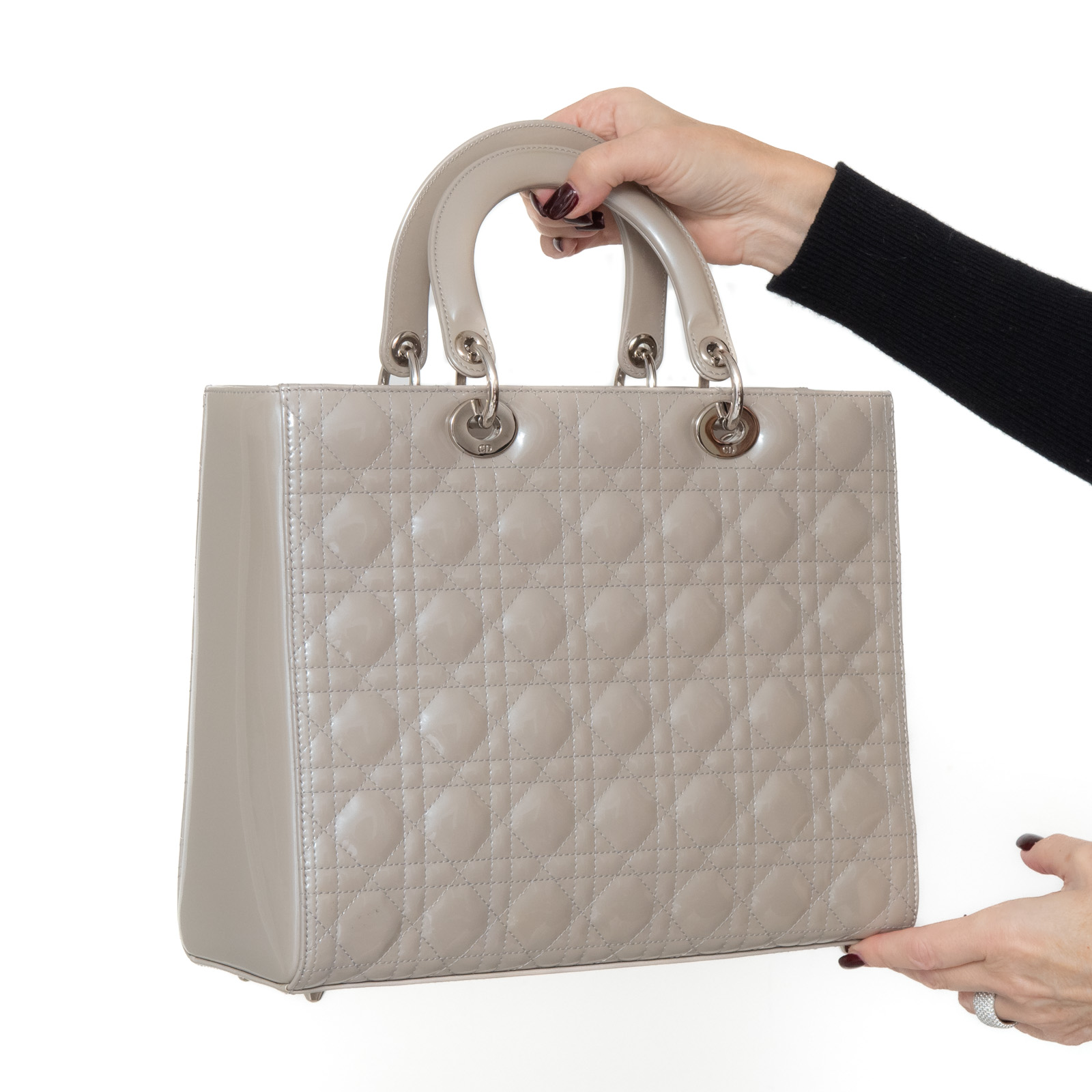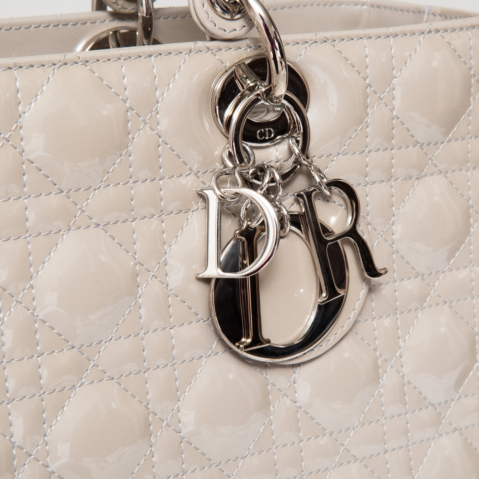 Dior Large Lady Dior Grey Patent Leather Bag