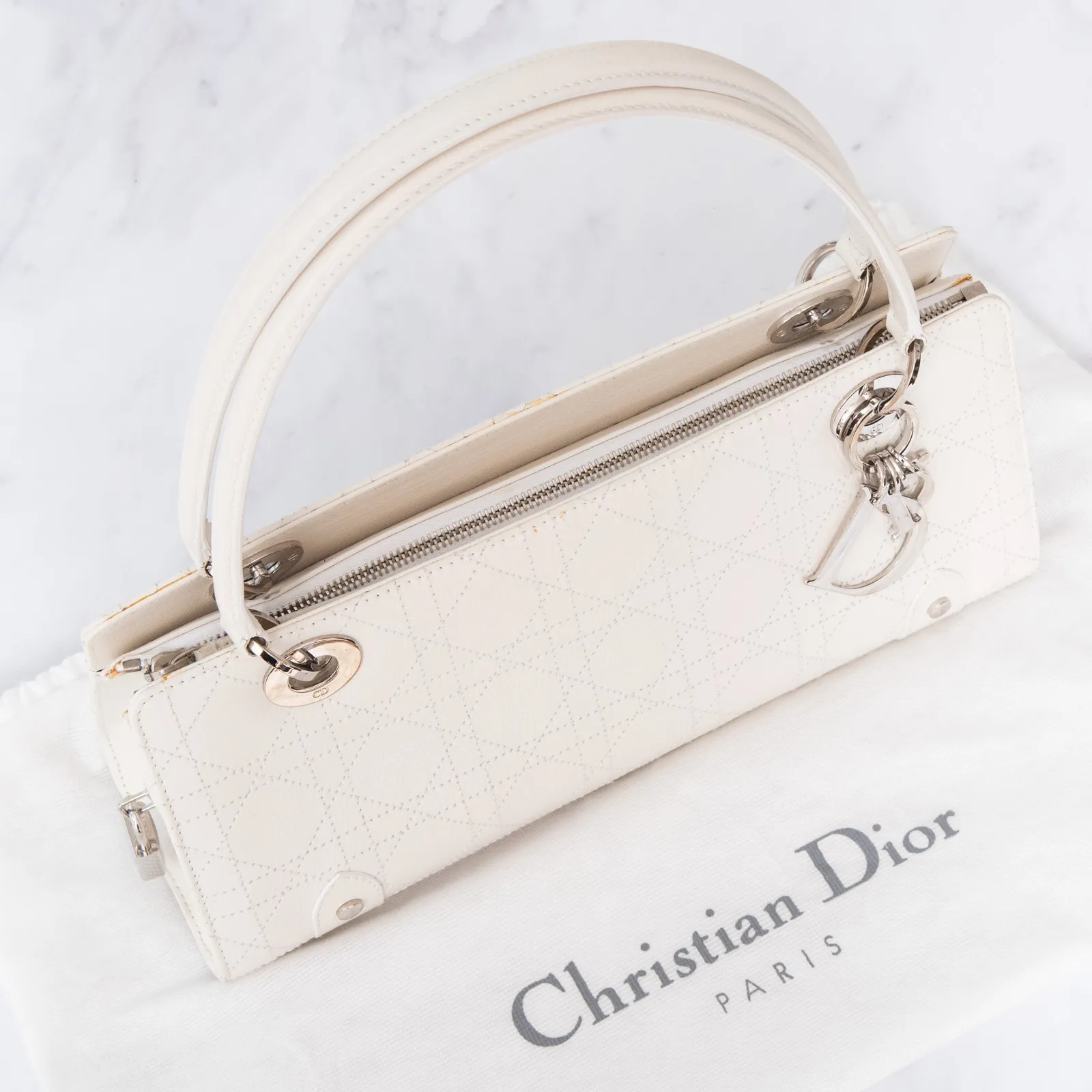 • Carry on shoulder or in crook of the arm, cannage stitch pattern, silver tone hardware, zip top closure